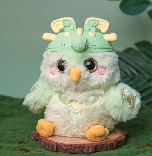“Hello~鸮小乐在这里!我能陪你玩游戏、讲故事……有啥想了解的尽管问!”这是团队于2025年12月推出的首个文物AI精灵“鸮小乐”。凑近这只圆滚滚的毛绒玩偶,就能听到它欢快地打招呼。这款玩偶以“妇好”青铜鸮尊为原型,设计初衷藏着团队对文化传播的巧思。刘雅楠说:“博物馆中的青铜重器代表着中华文明的庄严厚重,但要让这份厚重被当代青少年所接受,需要找到情感的连接点。”毛绒材质自带天然的亲和力与安全感,当原本庄严的鸮尊,变成可以软乎乎抱在怀里的玩偶,冰冷的文物便化作了可拥抱的伙伴,三千年的文明也借着触觉直抵人心。而小顾客一句“妈妈,鸮小乐在博物馆是不是没人陪它玩呀”,更让团队深刻感受到陪伴对于孩子的重要性,也坚定了他们用文创传递温暖的初心。