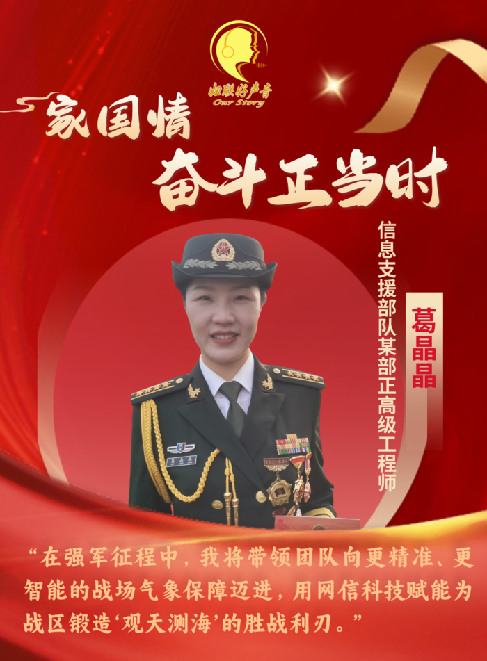 “在强军征程中,我将带领团队向更精准、更智能的战场气象保障迈进,用网信科技赋能为战区锻造‘观天测海’的胜战利刃。”葛晶晶信心满满。