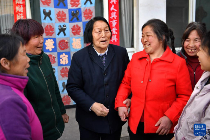 | 2019年3月23日,申纪兰(左三)在山西省平顺县西沟村与村民分享全国两会精神。新华社记者 曹阳 摄 |