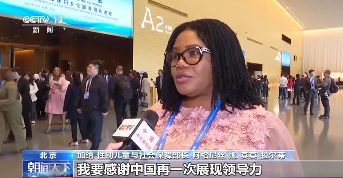 加纳性别、儿童与社会保障部长 阿格尼丝·娜·莫莫·拉尔蒂:我要感谢中国再一次展现领导力,让这么多国家领导人聚在一起,共同推进妇女发展与性别平等的事业。习主席强调的四点建议,核心都是呼吁开展联合协作,确保性别平等成为全球议题的核心之一。我们需要更多的行动,无论从哪个角度看,这次峰会都至关重要。