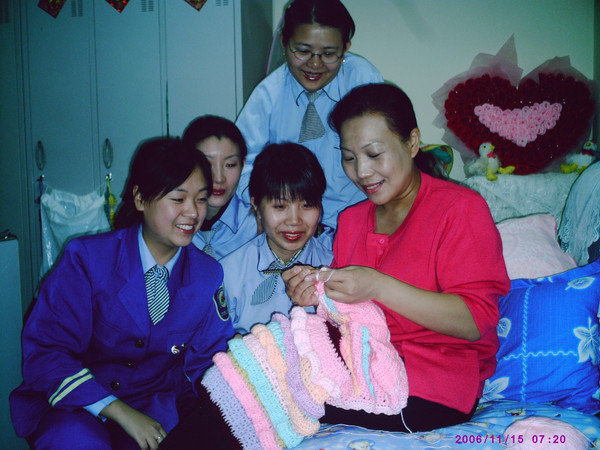 | 航天四院女职工为孩子们编织带有“航天特色”的毛衣。 |