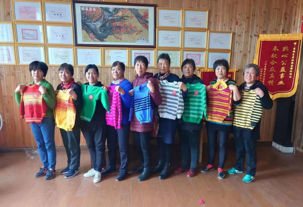 | 图为吉林大学巾帼志愿服务团收到“恒爱”毛线集中为孩子们编织毛衣。 |