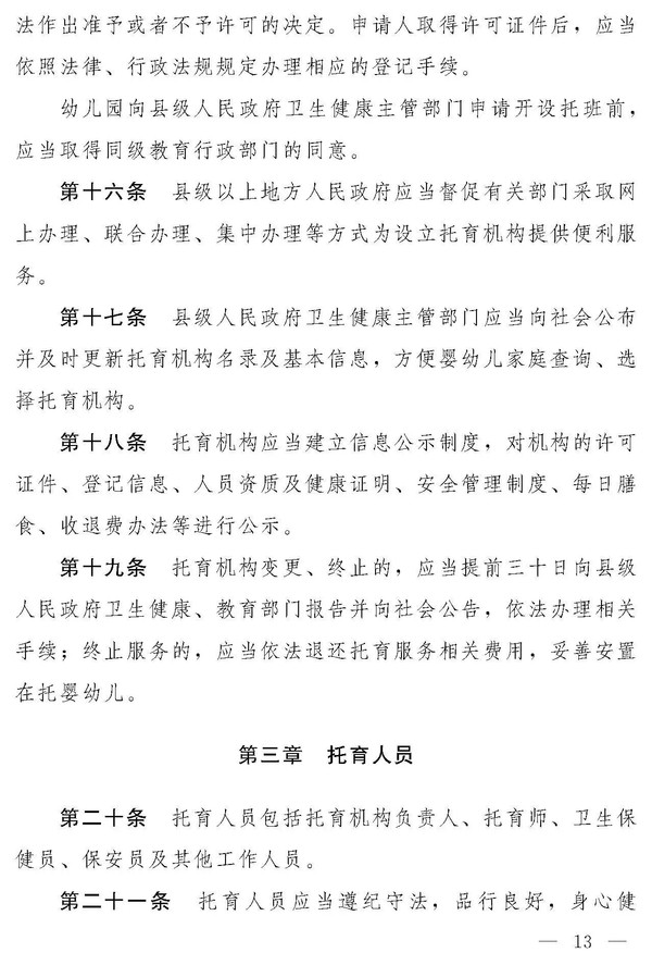 十四届全国人大常委会第十九次会议对《中华人民共和国托育服务法(草案)》进行了审议。现将《中华人民共和国托育服务法(草案)》公布,社会公众可以直接登录中国人大网(www.npc.gov.cn)或国家法律法规数据库(flk.npc.gov.cn)提出意见,也可以将意见寄送全国人大常委会法制工作委员会(北京市西城区前门西大街1号,邮编:100805。信封上请注明托育服务法草案征求意见)。