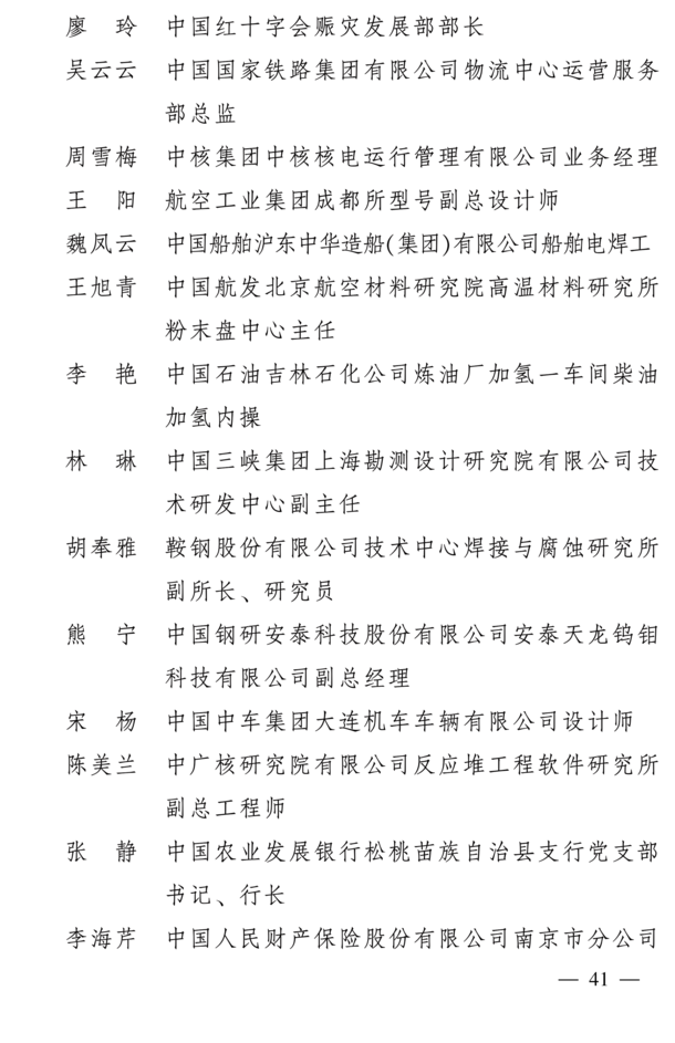 全国三八红旗手标兵名单