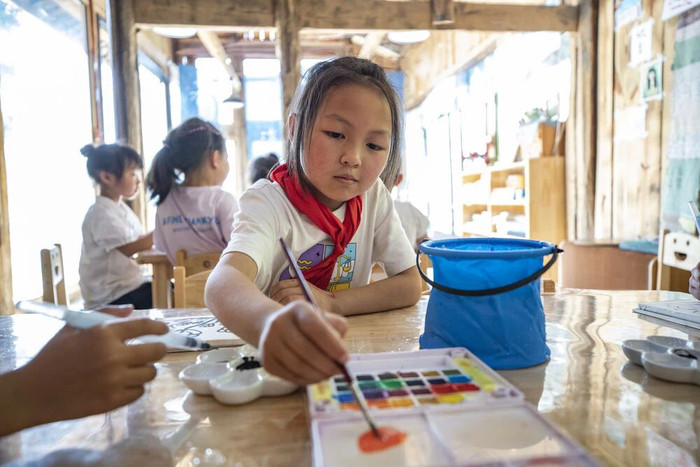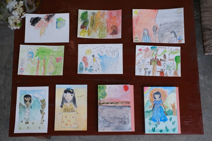 每周六,孩子们从山间各处徒步而来,在肖老师的带领下,读诗画画,认识世界,用画笔和文字尽情抒发情感,记录生活的点滴。艺术,在这里成为最简单纯粹的快乐源泉,治愈着孩子们的心灵。