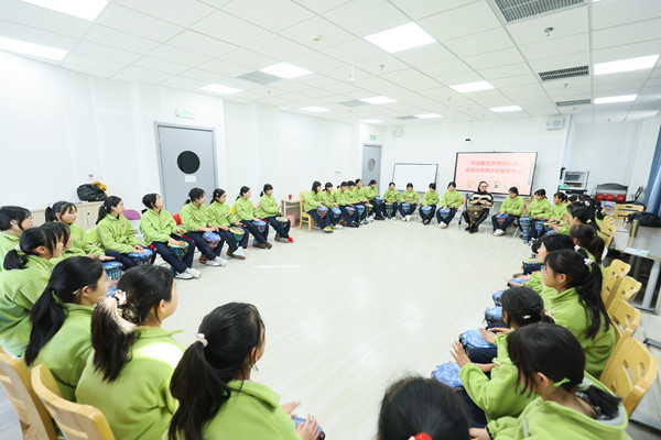 成长营以“心理赋能”作为启航的第一课。在专业老师的耐心引导帮助下,女童们围坐一圈,手持鼓槌,跟随节奏逐渐同步,在鼓声的共鸣中学会表达情绪、释放压力,增强团队协作能力。