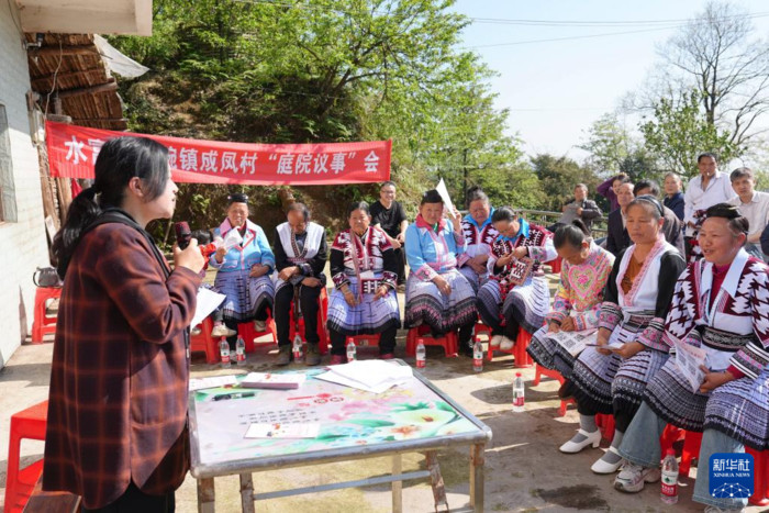 | 4月9日,干部在云南省水富市两碗镇成凤村向村民宣讲。新华社发(狄廷秀摄) |