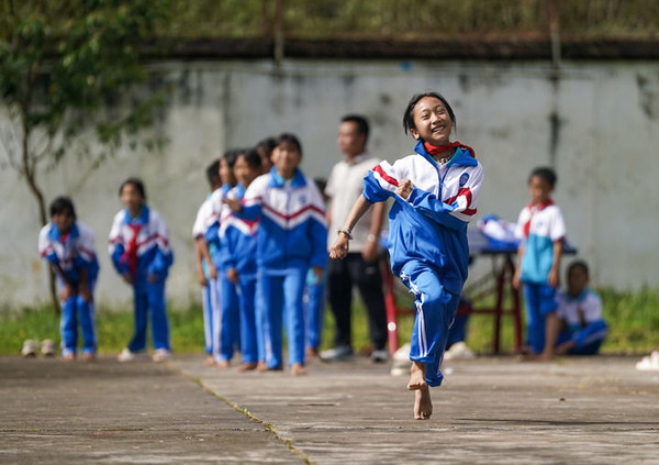 2025年9月15日,云南省普洱市孟连傣族拉祜族佤族自治县腊福小学学生课间在操场进行奔跑接力比赛。新华社记者 陈欣波 摄 |