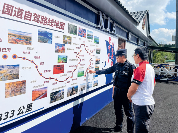 | 黄义为过路群众讲解边境通行路线与安全提示。 |