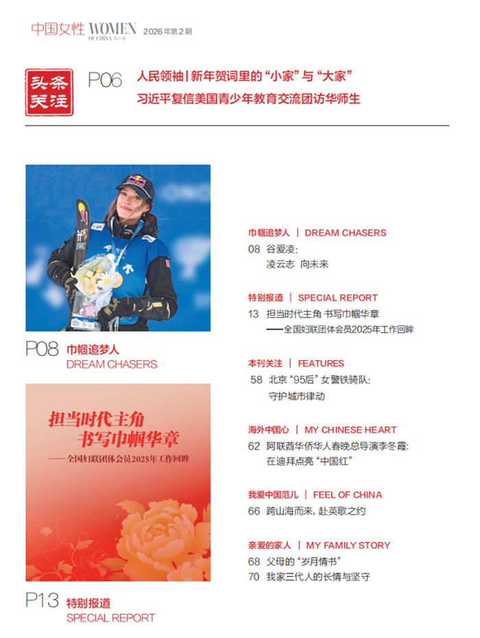 巾帼网 > 《中国女性(中文海外版)》2026年2月号目录