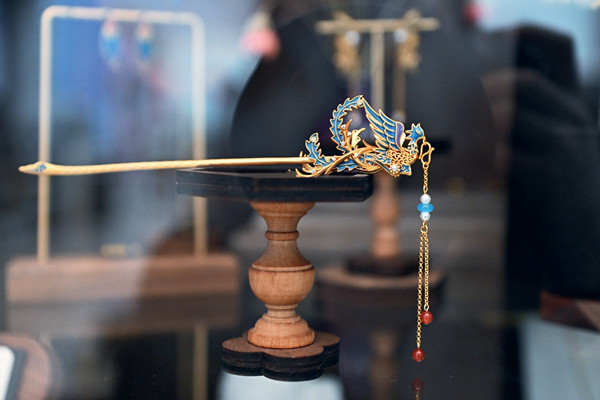 如何设计出既有凤冠神韵精髓、又适合日常使用的饰品,团队在凤冠的形象提取上花了大功夫。最终,她们选择提取核心的凤元素进行二次设计,打造出衔珠展翅的凤形主形象:发簪适配中式装扮,发夹成为日常小点缀;材质上用铜制作发簪保证质感,用更轻便的合金制作发夹。发簪的簪尾也经过多次迭代:“原本选取了龙的头部做设计,但使用样品后发现,龙头的开口很容易缠住头发给使用带来麻烦,最终改为了祥云,但龙鳞的部分正好可以增加簪体与头发的摩擦,正好平衡了这款簪头体积比一般簪子要大而带来的倾斜,因此予以保留。”经过多次改稿、打样、测验,一款羽翼舒展、灵动飘逸的发簪就此诞生,它再次体现了团队初心:让设计兼具美观与实用。