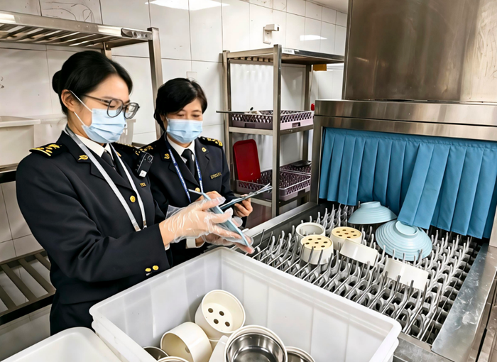 白天,她们扎根车间,从餐具清洗、烘干、包装到出库,每一个环节、每一道流程都逐一拆解、细致核验,详细记录操作流程、物料流转轨迹;晚上,她们加班加点整理数据、核对生产台账,逐条追溯3条核心供应链,不放过任何一个细节。
