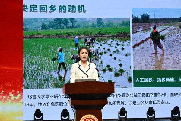 “保障粮食安全,是‘国之大者’。”作为一名返乡创业青年,党的二十大代表、全国三八红旗手、湖南省岳阳县丰瑞农机专业合作社理事长董敏芳分享了自己十余年扎根农村带领乡亲们发展水稻产业,推动乡村振兴的经历。她勉励女大学生积极投身乡村振兴,把青春书写在希望的田野上,为保障国家粮食安全贡献巾帼力量。