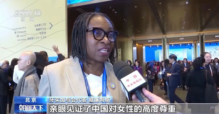 牙买加与会代表 威廉姆斯:我已经在中国生活了两年,亲眼见证了中国对女性的高度尊重。在中国各个决策层面、各个领导岗位中,都能看到女性的身影。这一点令人赞叹,也为世界树立了可借鉴的典范。中国有太多经验可以分享给世界,我希望世界各国都能了解并借鉴中国的经验,携手共建共享更加美好的世界。