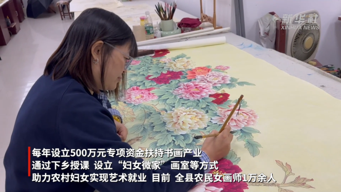 作为“中国工笔画之乡”,巨野县近年来立足书画产业优势,将“翰墨丹青”打造成妇女创收创业的重要平台,每年设立500万元专项资金扶持书画产业,通过下乡授课、设立“妇女微家”画室等方式,助力农村妇女实现艺术就业。目前,全县农民女画师1万余人。