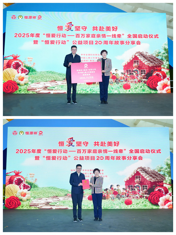 2025年12月22日,由中国儿童少年基金会(以下简称中国儿基会)、恒源祥(集团)有限公司(以下简称恒源祥集团)共同主办的2025年度“恒爱行动——百万家庭亲情一线牵”全国启动仪式暨“恒爱行动”公益项目(以下简称“恒爱行动”)20周年故事分享会在中国妇女儿童博物馆举行。中国儿基会理事长丛中笑、秘书长李忠明、恒源祥集团董事长兼总经理陈忠伟等嘉宾出席,部分中央和国家机关、全国妇联、各省(区、市)妇联和新疆生产建设兵团妇联代表,非遗编织传承人、爱心妈妈、受益儿童、相关媒体等代表150余人参加。活动由中央广播电视总台主持人林泉主持。