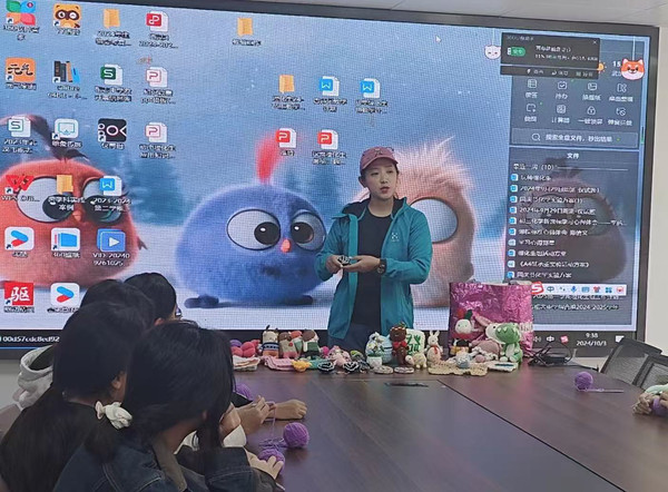 | 图为武汉毛线钩编非遗项目第三代传承人凃洁为团队培训织毛衣。 |