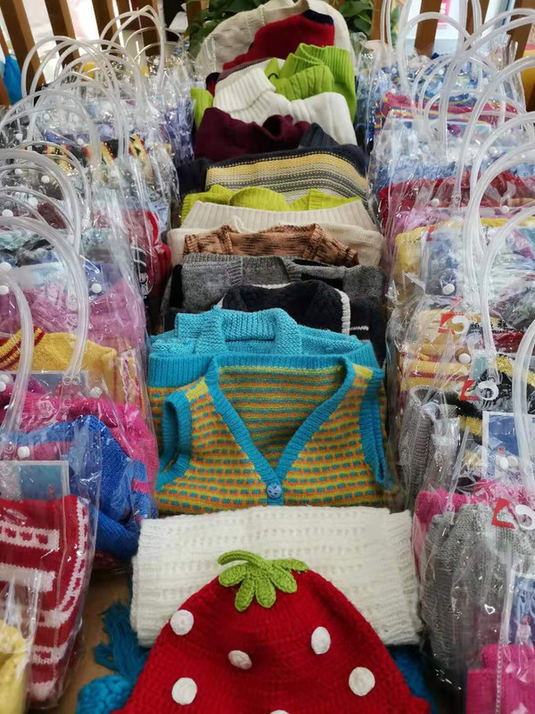 | 梅山姑娘手工编织工作室为孩子们编织的毛衣。 |