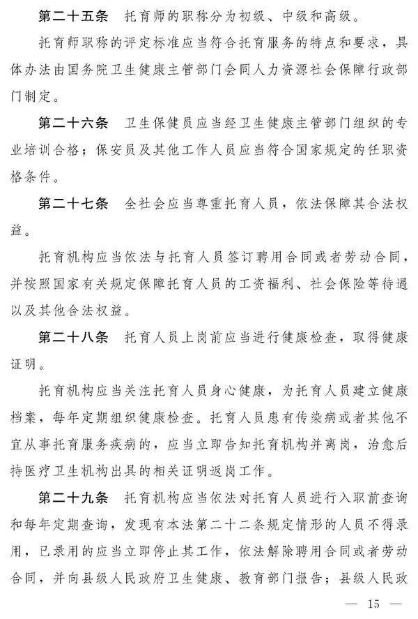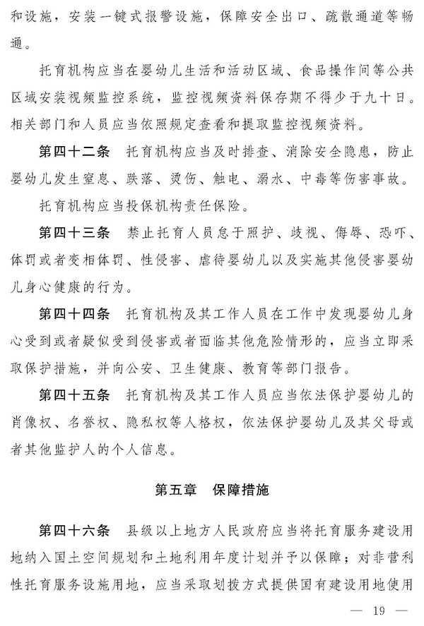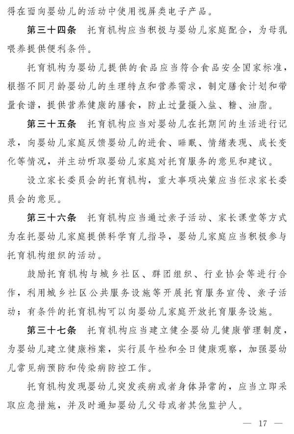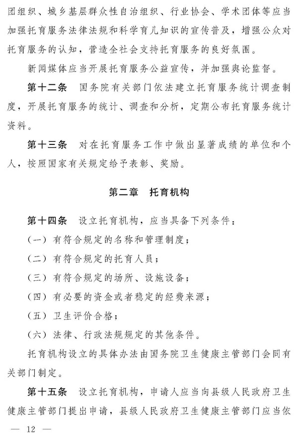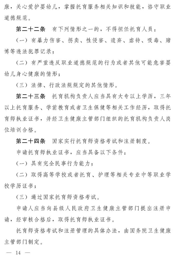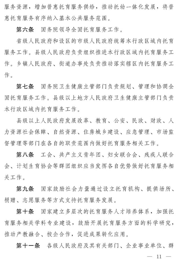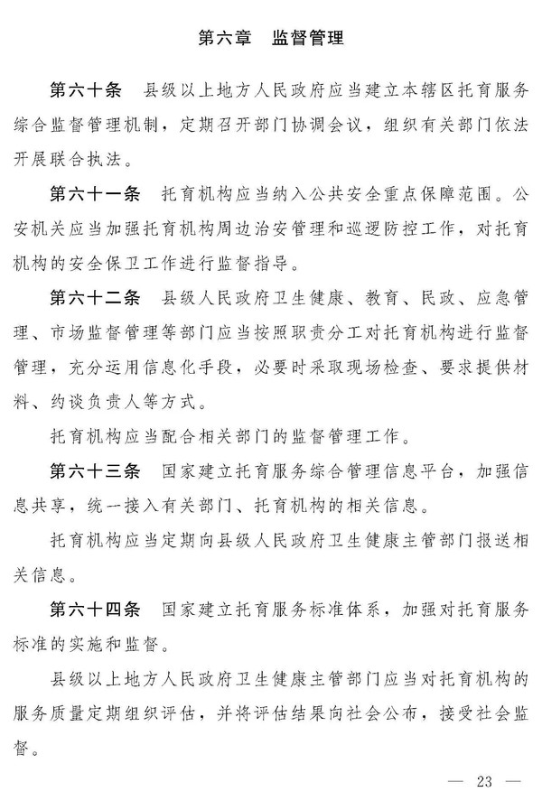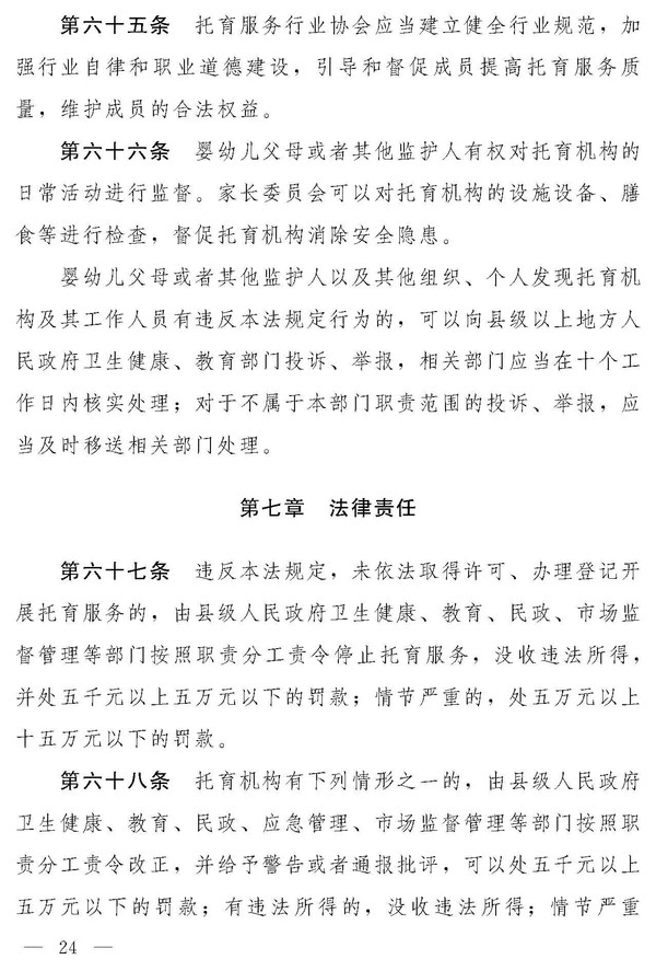 十四届全国人大常委会第十九次会议对《中华人民共和国托育服务法(草案)》进行了审议。现将《中华人民共和国托育服务法(草案)》公布,社会公众可以直接登录中国人大网(www.npc.gov.cn)或国家法律法规数据库(flk.npc.gov.cn)提出意见,也可以将意见寄送全国人大常委会法制工作委员会(北京市西城区前门西大街1号,邮编:100805。信封上请注明托育服务法草案征求意见)。