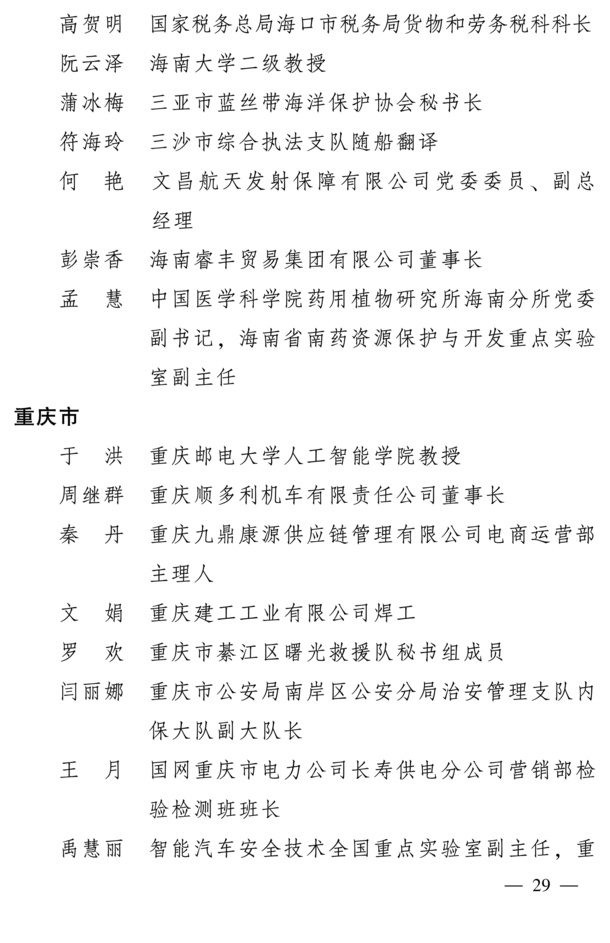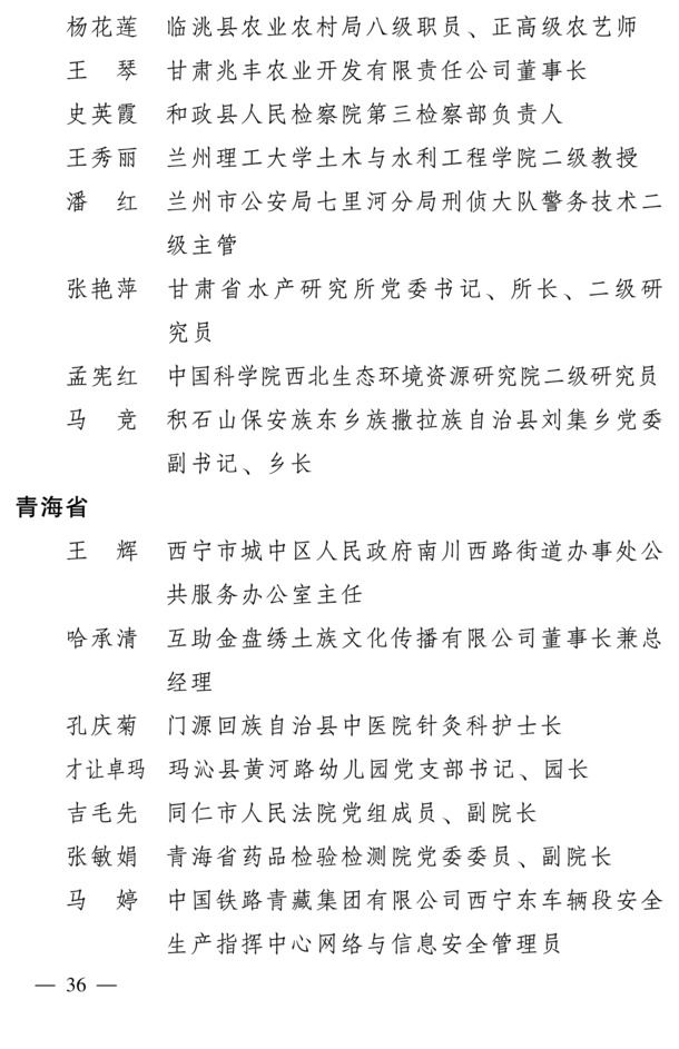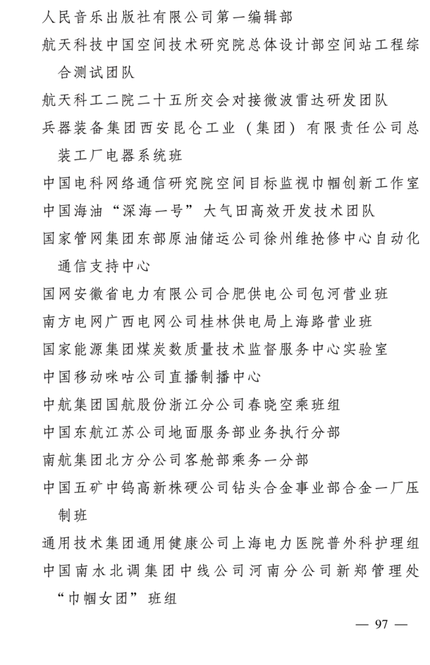 全国三八红旗手标兵名单