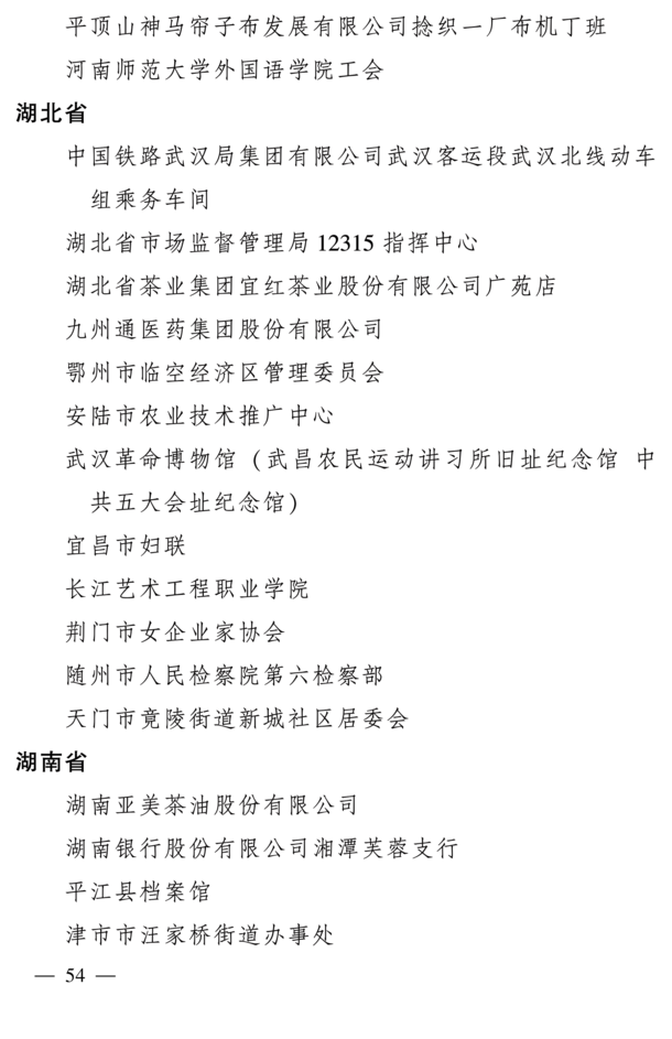 为表彰先进、树立榜样, 充分发挥先进典型和模范人物示范作用, 全国妇联决定, 授予兰臻等9人全国三八红旗手标兵称号, 授予阮祥燕等598人全国三八红旗手称号, 授予中国人民抗日战争纪念馆社会教育部等400个单位全国三八红旗集体称号, 授予首都医科大学附属北京同仁医院耳鼻咽喉头颈外科等 600 个单位全国巾帼文明岗称号。