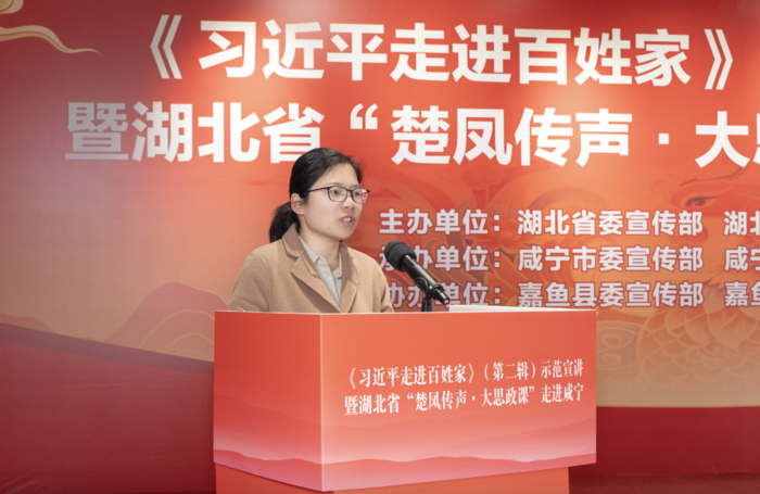 春意暖,书香浓。近日,由湖北省委宣传部、湖北省委讲师团、湖北省妇联主办的《习近平走进百姓家》(第二辑)示范宣讲暨湖北省“楚凤传声·大思政课”走进咸宁活动在咸宁市嘉鱼县潘家湾镇四邑村举行。200余名妇联干部、妇女群众代表齐聚一堂,聆听记录者和亲历者的深情讲述,汲取字里行间蕴含的精神力量,共话牢记嘱托、感恩奋进的昂扬之志。