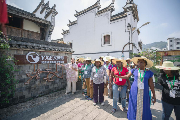 | 9月18日,参加能力建设研修班的中非共和国妇女官员,在浙江省义乌市李祖村调研。(受访者供图) |