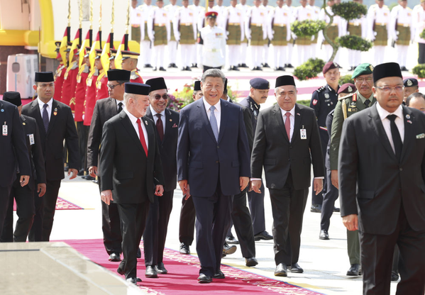 2025年4月16日上午,马来西亚最高元首易卜拉欣在马来西亚国家王宫同中国国家主席习近平举行会见。易卜拉欣在国家王宫广场为习近平举行隆重欢迎仪式。 新华社记者 黄敬文 摄 |