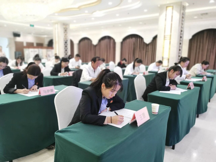 比赛一开始,笔试环节就给选手们来了个“下马威”。试卷上,调解技巧应用、相关法律法规条文、调解卷宗制作等题目密密麻麻,考验着选手们的理论功底和知识储备。选手们时而眉头微蹙认真思索,时而提笔疾书沙沙作响,仿佛在“笔尖战场”上与难题展开激烈博弈。