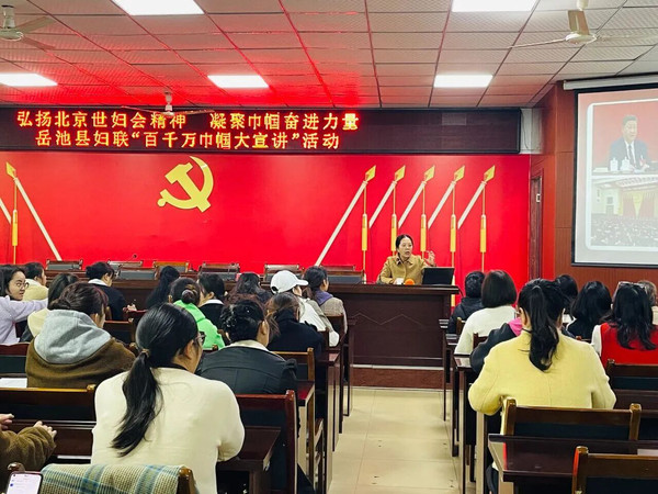 广安岳池县妇联依托《花开中国》宣传片开展“百千万巾帼大宣讲”,将世妇会精神与基层实践相结合,让理论宣讲走进群众生活,深入人心;