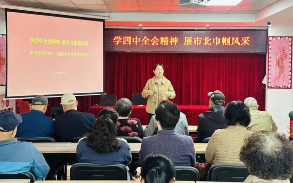 枣庄市市中区中心街街道妇联开展党的二十届四中全会精神宣讲走进新兴领域、走进社区活动,辖区妇联执委、巾帼志愿者以及新兴领域妇女代表等群体共学全会精神,凝聚奋进力量。在大观园社区,街道巾帼宣讲团成员认真解读党的二十届四中全会精神宣讲提纲内容,宣讲结束后,多位妇女代表结合自身经历畅谈学习体会,纷纷表示要切实把全会精神转化为服务妇女群众的实际行动,在家庭中弘扬社会主义核心价值观,以良好家风支撑社会文明新风尚。