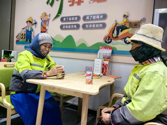 “环卫工人、快递员、外卖员、出租车司机……这些常年在外奔波的人,最大的烦恼就是工作中没有地方休息,更不用说刮风下雨、高温天气所带来的各种不便和安全隐患,我们打造娘家人暖‘新’角,就是要解决他们吃饭难、饮水难、休息难的问题。”碌曲路社区党委书记丁鹏道出了设立娘家人暖“新”角的初衷。