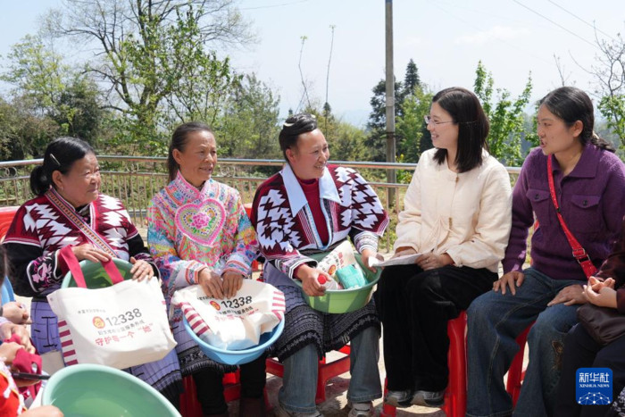 | 4月9日,在云南省水富市两碗镇成凤村,妇女干部(右二)了解当地妇女家庭生活情况。新华社发(狄廷秀摄) |