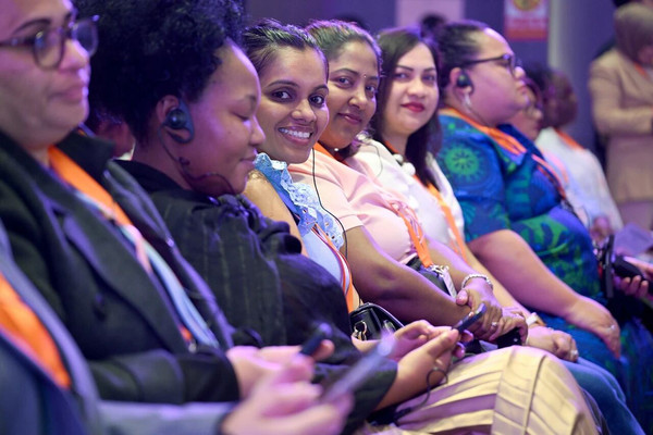 中共中央和国务院有关部门负责人,香港特别行政区政府和澳门特别行政区政府代表,外国驻华使节、国际组织驻华代表、发展中国家人工智能促进女性发展研讨班学员,粤港澳大湾区各界妇女代表约300人齐聚佛山,共襄盛会。