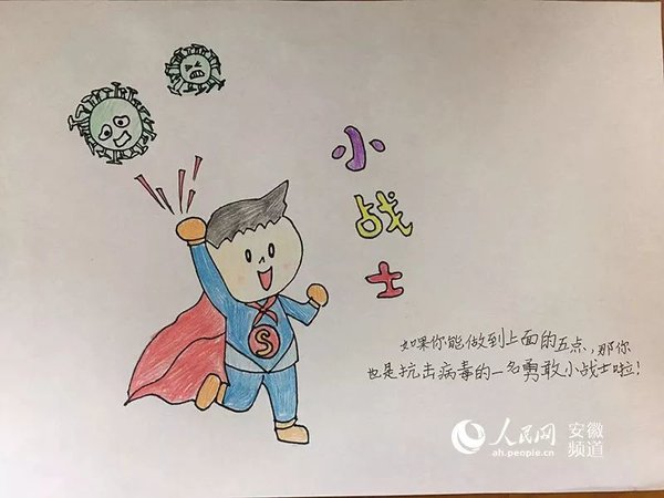 | 安庆市迎江区双莲寺小学二年级学生陈奕霏的手绘防疫漫画 |