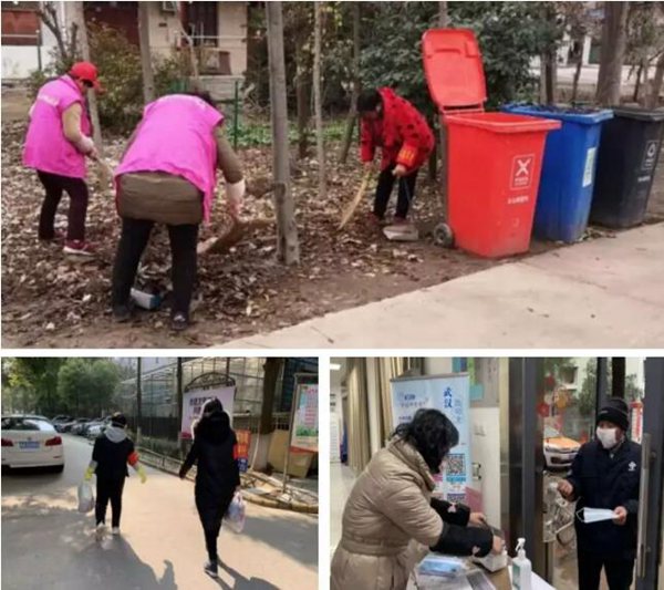 武汉市组织街道、社区妇联发动执委、巾帼志愿者落实入户宣传工作,借助小喇叭、张贴公告、发放宣传单,利用QQ群、微信群、微邻里平台等多种形式,切实增强居民防控意识。在辖区各个入口对外来车辆和人员做防范引导,为居民群众发放口罩,上门为居民定时量体温,时刻关注发热病人的情况。