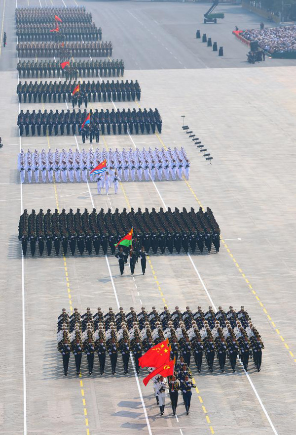 | 9月3日,纪念中国人民抗日战争暨世界反法西斯战争胜利80周年大会在北京隆重举行。这是徒步方队接受检阅。新华社记者 刘续 摄 |