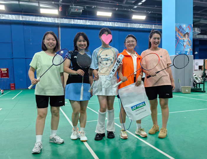 | 爱心妈妈王春霞(左二)带着小雷(左三)练习打羽毛球。 |